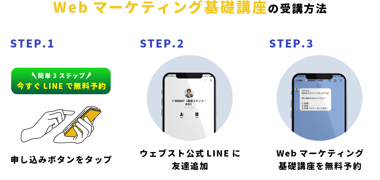 大丈夫です。まずは気軽に、初回限定Webマーケティング講座をご予約下さい。